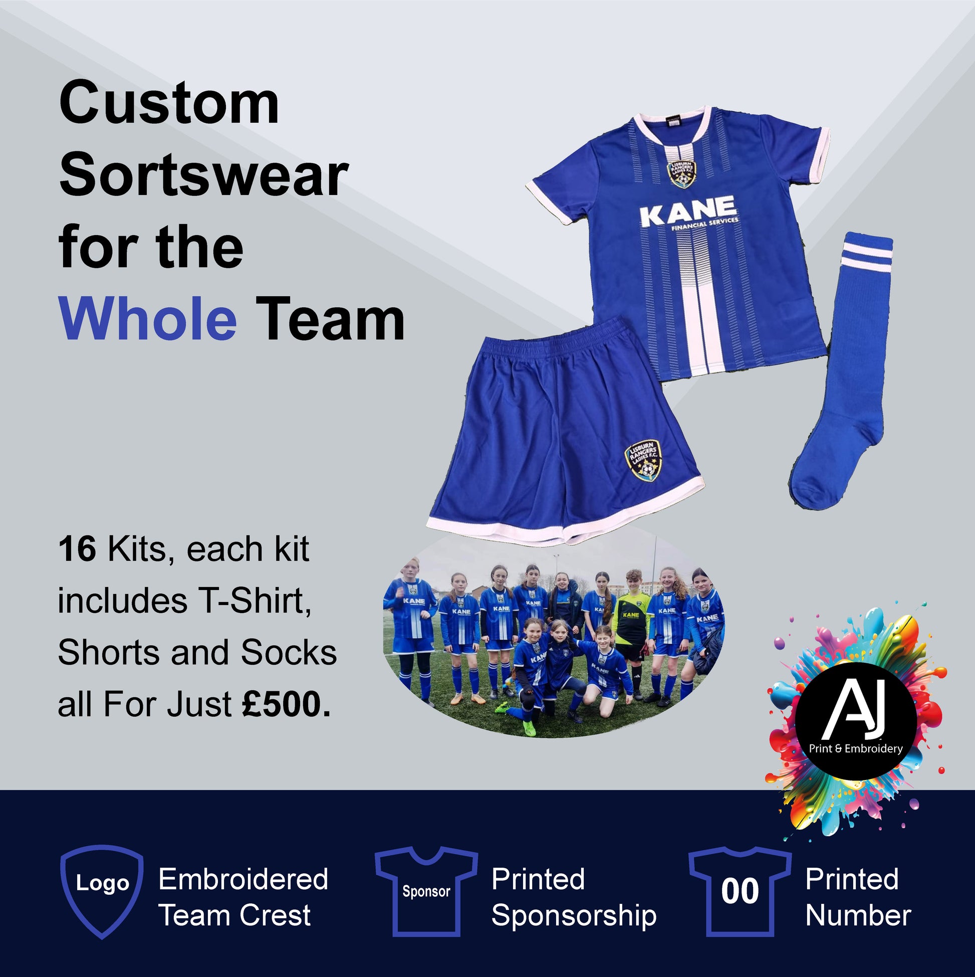 T-Shirts also include Printed Sponsor on front and Number on back.